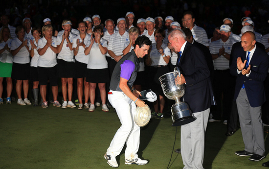 当麦克罗伊第二杆将球送到果岭沙坑的时候悬念基本上已经结束了,因为之前一组的米克尔森和瑞奇-福勒射鹰的可能性很小,而他仍旧可以抓鸟。麦克罗伊切球上果岭之后,安全地两推保帕,最终领先一杆夺取了胜利。当那个保帕短推进洞的时候,麦克罗伊在夜色渐渐降临的球场上兴奋地庆祝了起来。