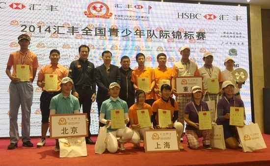 2014汇丰全国青少年高尔夫队际锦标赛在广州风神高尔夫球会圆满落幕。上海队以684杆的总成绩夺得了团体亚军,重庆队以4杆优势获得团体冠军,北京队获得季军。汤榕健拿下个人赛男子组冠军,周赐麟获得个人赛男子组第四名,孙千雅获得个人女子组第五名。