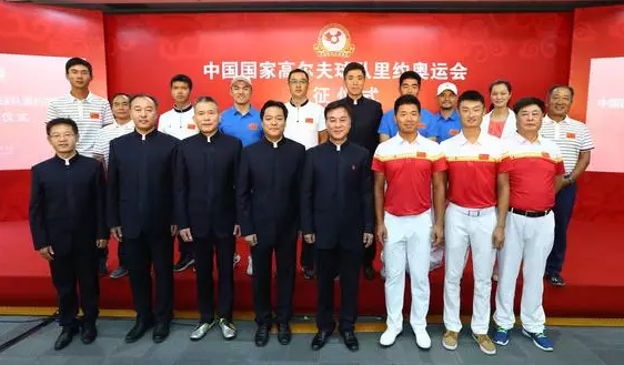 7月25日,在北京体育大学国家训练基地,由国家体育总局小球运动管理中心、中国高尔夫球协会主办,比音勒芬服饰股份有限公司、深圳市比奇汉商贸有限公司协办的中国国家高尔夫球队里约奥运会出征仪式隆重召开,为中国高尔夫的的九位高尔夫代表壮行。中国队由9人组成,除以上四名运动员外,小球中心主任、中高协副主席张小宁担任领队,球童是李近高、药丸龙一(Yakumaru Ryuichi)、墨瑟-莱夫(Mercer Leftwich III)、玛蒂-蓝恩(Mardi Lunn)。中国男队将于7月29日先行赴圣保罗训练营,8月4日进驻奥运村,11-14日比赛。中国女队将于8月3日在北京集结,7日赴圣保罗训练营,12日进驻奥运村,17-20日比赛。运动一部部长金宏文、副部长韦庆峰将随同男队一起开赴圣保罗训练营开展赛前训练。