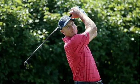美国46岁选手在第三洞直接击入了135码的老鹰,在转场处连续抓到7只小鸟,接着在16号洞推入24英尺推杆,抓到了全天最后一只小鸟。