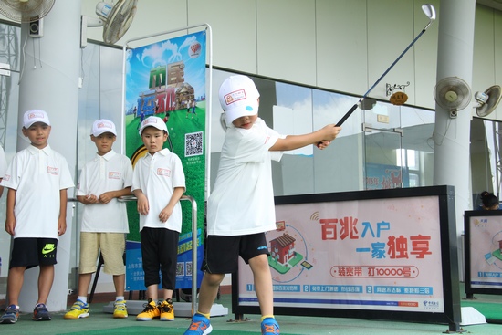 经过一天培训,百余位参加夏令营的孩子们,在了解高尔夫的发展历史、礼仪、基本规则的同时,学习了挥杆、推切杆,体会到了高尔夫球的技巧和乐趣。趣味切杆比赛受到小朋友们的热情欢迎,不少来自国际学校的“小老外”们也加入其中。裁判宣布比赛规则后,小朋友们井然有序的参与到如火如荼的比赛中来,虽然天气炎热,但丝毫没有击退小朋友们的挥杆热情,大家都体验到了趣味赛带来的快乐,洋溢着对高尔夫球运动的热爱。