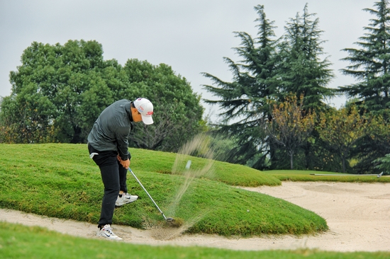 一场秋雨一场凉,风吹梧桐叶断肠,一场的秋雨又如期而至。在决赛轮中,张常垒(69杆)、宋超(70杆)和潘小利(71杆)的3位职业选手同组比拼,实力相近的3人越战越勇:宋超首先以3只小鸟先下一城步步紧逼领先的康静安,此时的潘小利和张常垒则同以-1紧随其后,在后九洞宋超没有保持住好状态,接连吞下柏忌,被后发制人的张常垒和潘小利追平,潘小利在第18洞擒鹰成功收获71杆 成为第二轮的唯一红字,最终3人同以142杆的二轮总成绩并列本站比赛职业组亚军。而康静安在本轮比赛中只在前九洞抓到2只“小鸟”,后九洞也并没有再次爆发,以141杆(66-75)惊险夺冠。